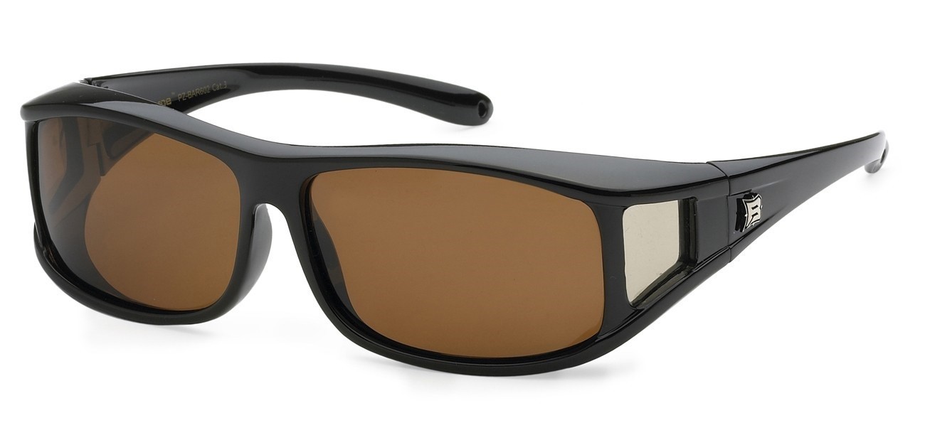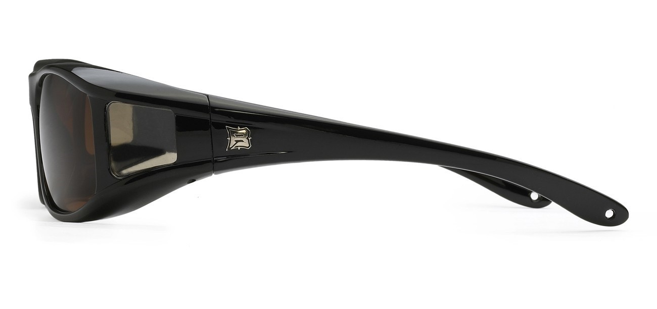 Barricade Cover Overs in Polarized Lens. As the population continues to age, cover over sunglasses is becoming more popular. This model has a side lens that is more of a square shape, as opposed to the more rounded version of the Barricade 604 style. However, the size dimensions are the same.