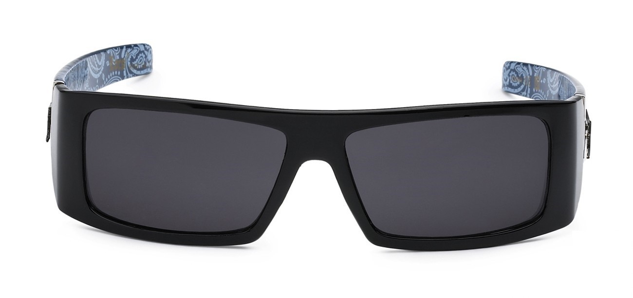 These sunglasses feature a sleek, rectangular shape with polished black frames and black lenses for a classic look. Each pair showcases a unique assorted color bandana design on the inner temple, adding a touch of urban flair. Sold in units of a dozen, these sunglasses are perfect for retailers seeking to offer their customers stylish, distinctive eyewear with a personal touch.