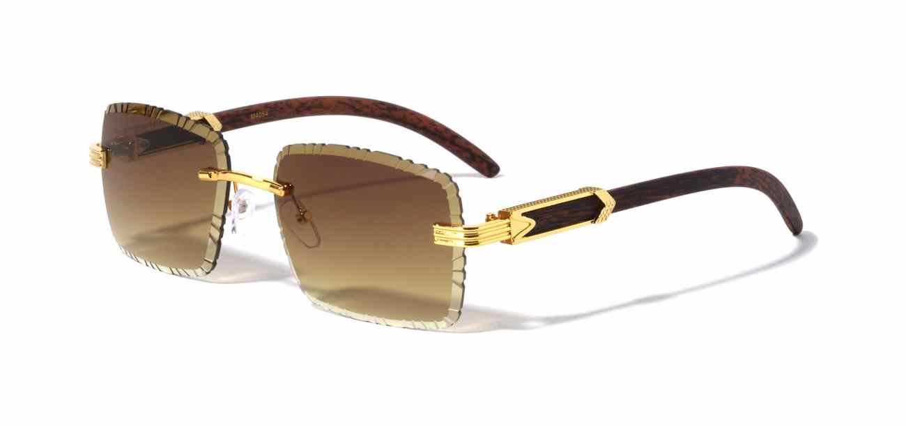 Upgrade your eyewear collection with Rimless Diamond Edge Cut Lens Rectangle Clear Lens Glasses featuring stylish wood-pattern temples — designed with a sleek rimless frame, precision diamond-cut lenses, and lightweight comfort, these fashion-forward glasses deliver modern sophistication, premium detailing, and versatile appeal perfect for retailers targeting customers seeking standout, non-prescription eyewear for everyday and professional wear.