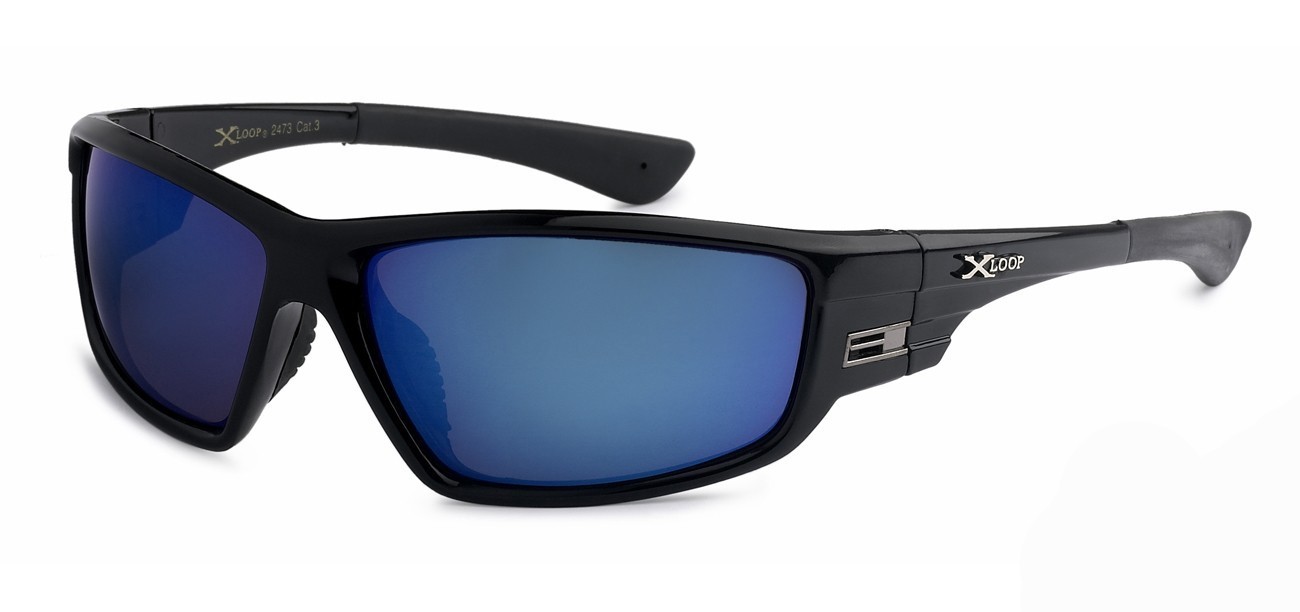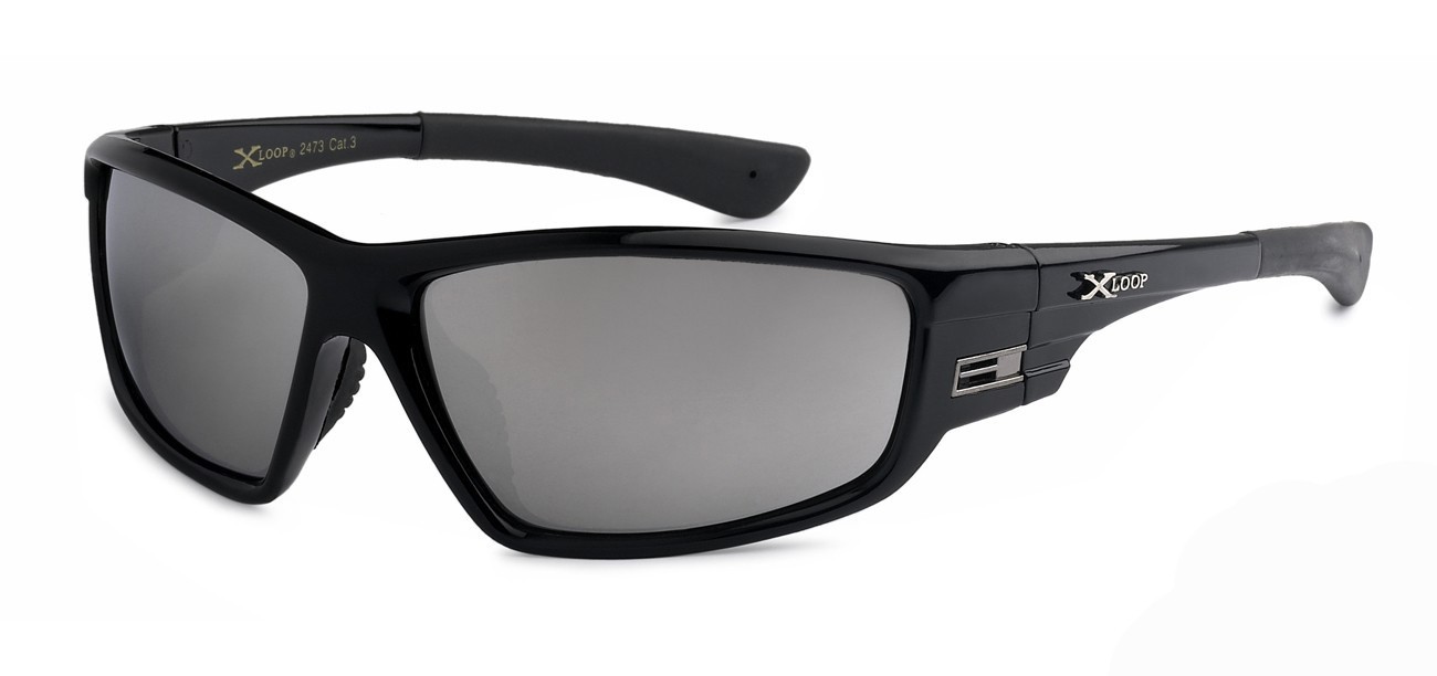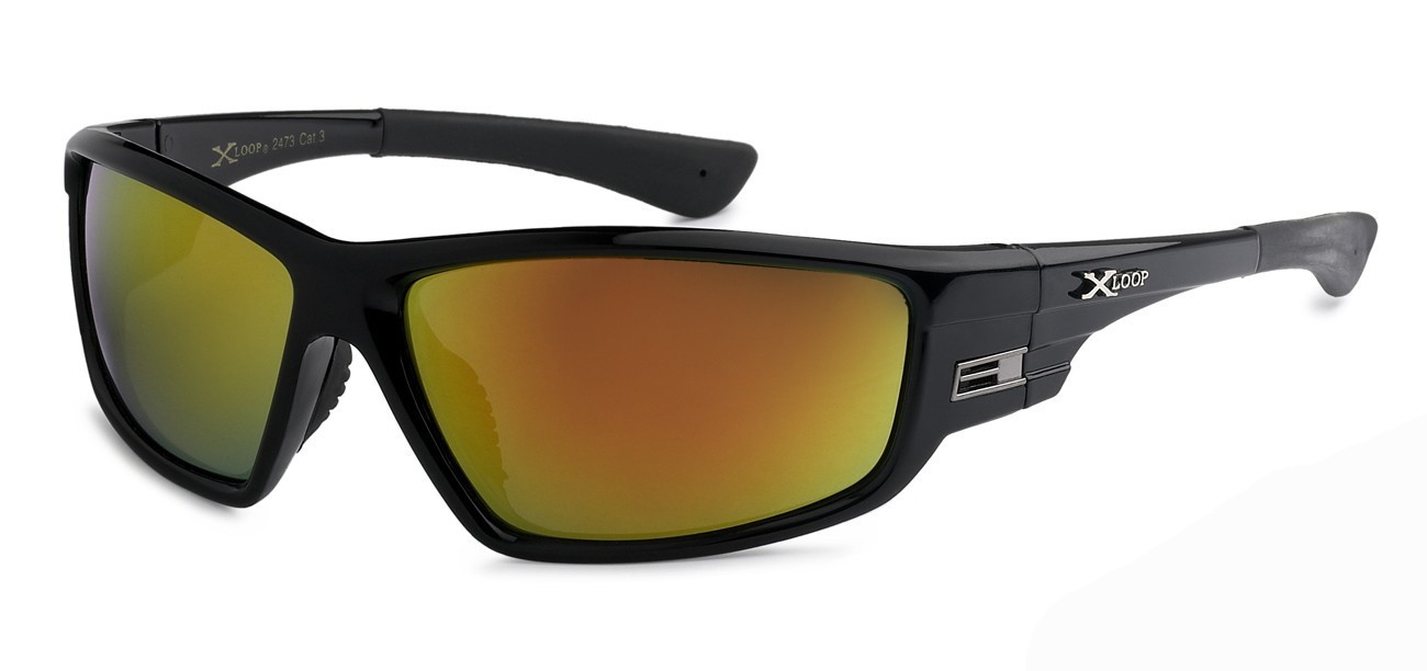 This X-Loop Sports Wrap comes in solid basic colors. The lens colors are silver mirror and revo. The nose piece is rubberized for maximum comfort for long term wear. With 100% UV protection.