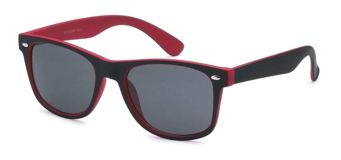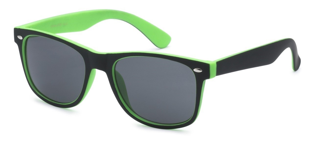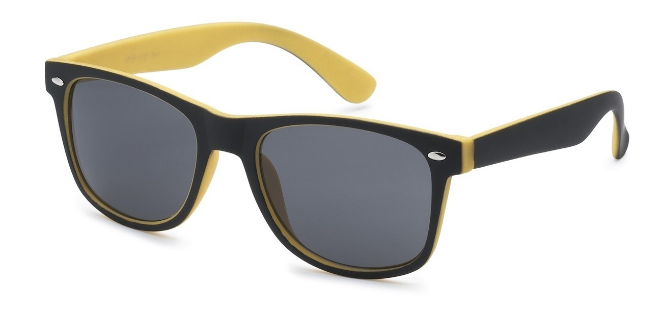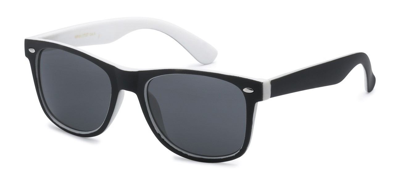 Back in stock! This is a two toned retro classic style that comes in assorted colors and smoke lens. You can never have too many for your selection of sunglasses! This frame continues to be the top selling shape and shows no sign of slowing down.