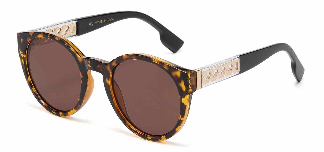 Upgrade your eyewear lineup with these stylish round sunglasses featuring a bold frame and elegant metal-accent temples for a modern fashion look. Designed with lightweight construction and UV400 protection, they offer both comfort and sun protection customers expect. The trendy round silhouette and versatile color options make these wholesale sunglasses attractive sellers for boutiques, fashion retailers, and accessory shops.
