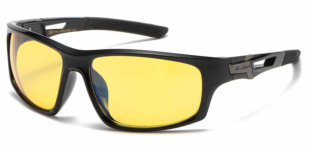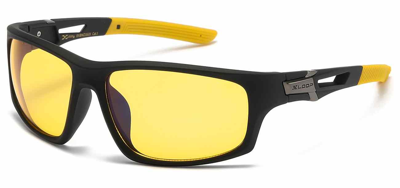 Step into the future of eyewear with our X-Loop Blue Light/Night Driving sunglasses. Crafted from durable polymer, these sports wrap sunglasses feature a sleek design in Black or Black with Crystal Clear accents. The lenses, available in Blue Light for screen time and Yellow for Night Driving, offer advanced eye protection. Embrace both style and functionality with these shades designed to keep you on trend and safeguard your eyes in various settings.