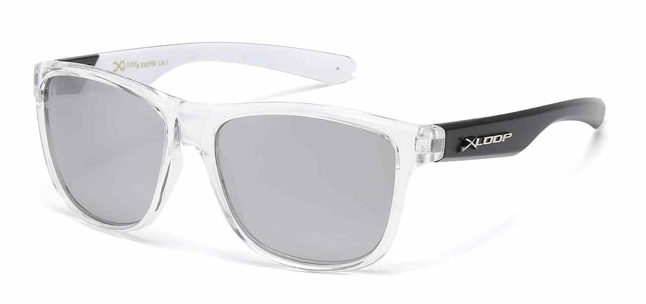 Add a fresh, modern look to your retail display with X-Loop clear frame sport sunglasses. Featuring crystal-clear frames with bold colored temples and mirrored or smoke lenses, these shades deliver eye-catching style customers love. Lightweight, durable, and equipped with UV400 protection, they’re perfect for everyday wear. Sold by the dozen, these wholesale sunglasses are great impulse sellers for kiosks, boutiques, and convenience stores.