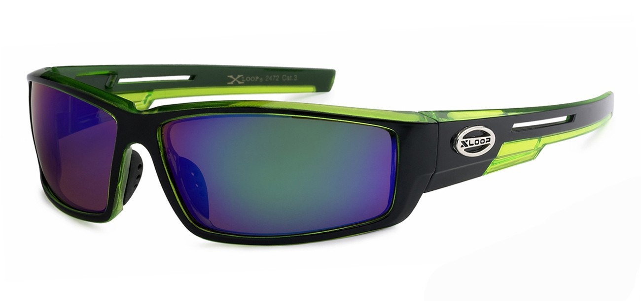 This X-Loop Sports Wrap comes in lively colors as shown. The lens is assorted smoke and Revo. A comfortable fit for long-term wear, these wholesale shades are a must-carry for sunglasses retailers with a market for buyers with an active lifestyle. With 100% UV protection.